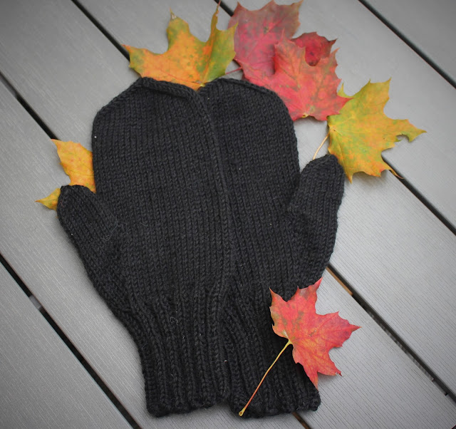 Miehen kaveri ilmoitti kesällä, että hän haluaa uudet lapaset. Noh, minäpä teen! Hän halusi mustat peruslapaset, joten hommahan oli helppo. Ainoastaan musta ei ole värinä mun suosikki neulomisväri. Kun mustalla neuloo, pitää aina olla paljon tarkempi! Mahdolliset virheet ei mustassa näy niin hyvin, lisäksi silmukoiden laskeminen on haastavampaa.
